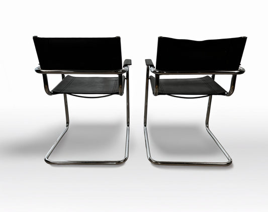 Set of 6 Vintage Cantilever Chairs in Chrome & Black