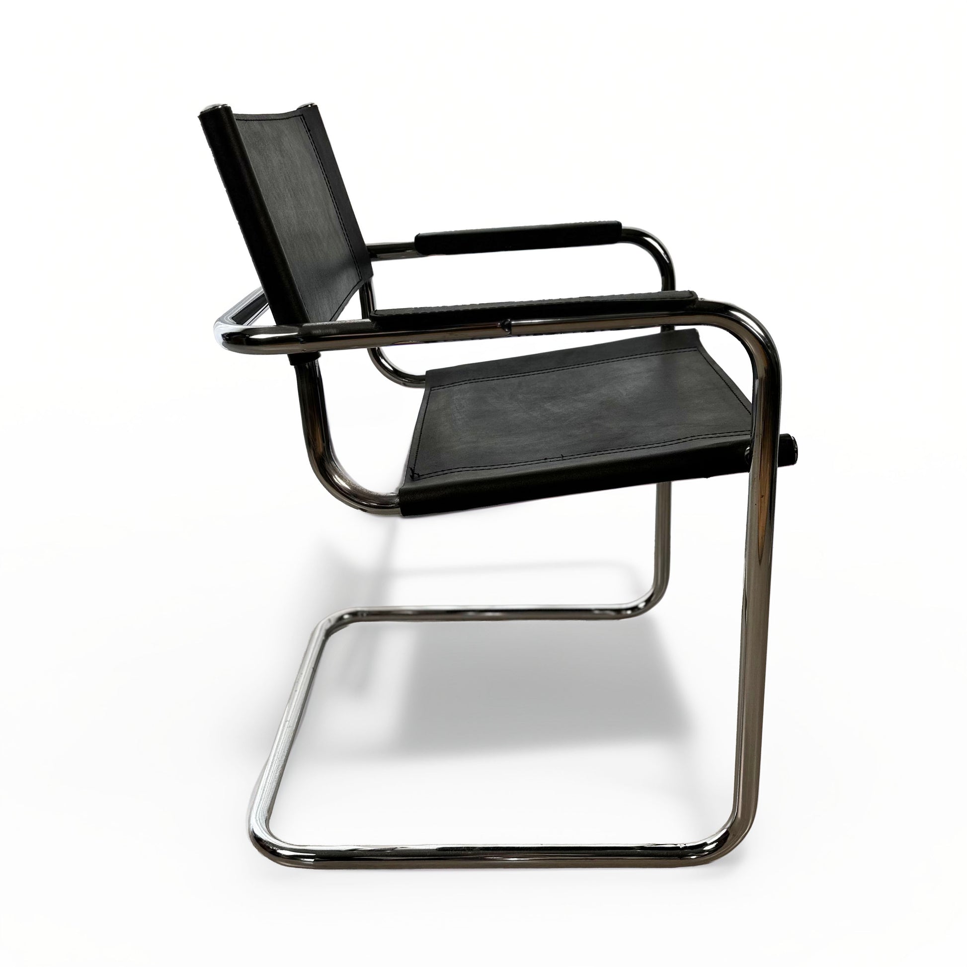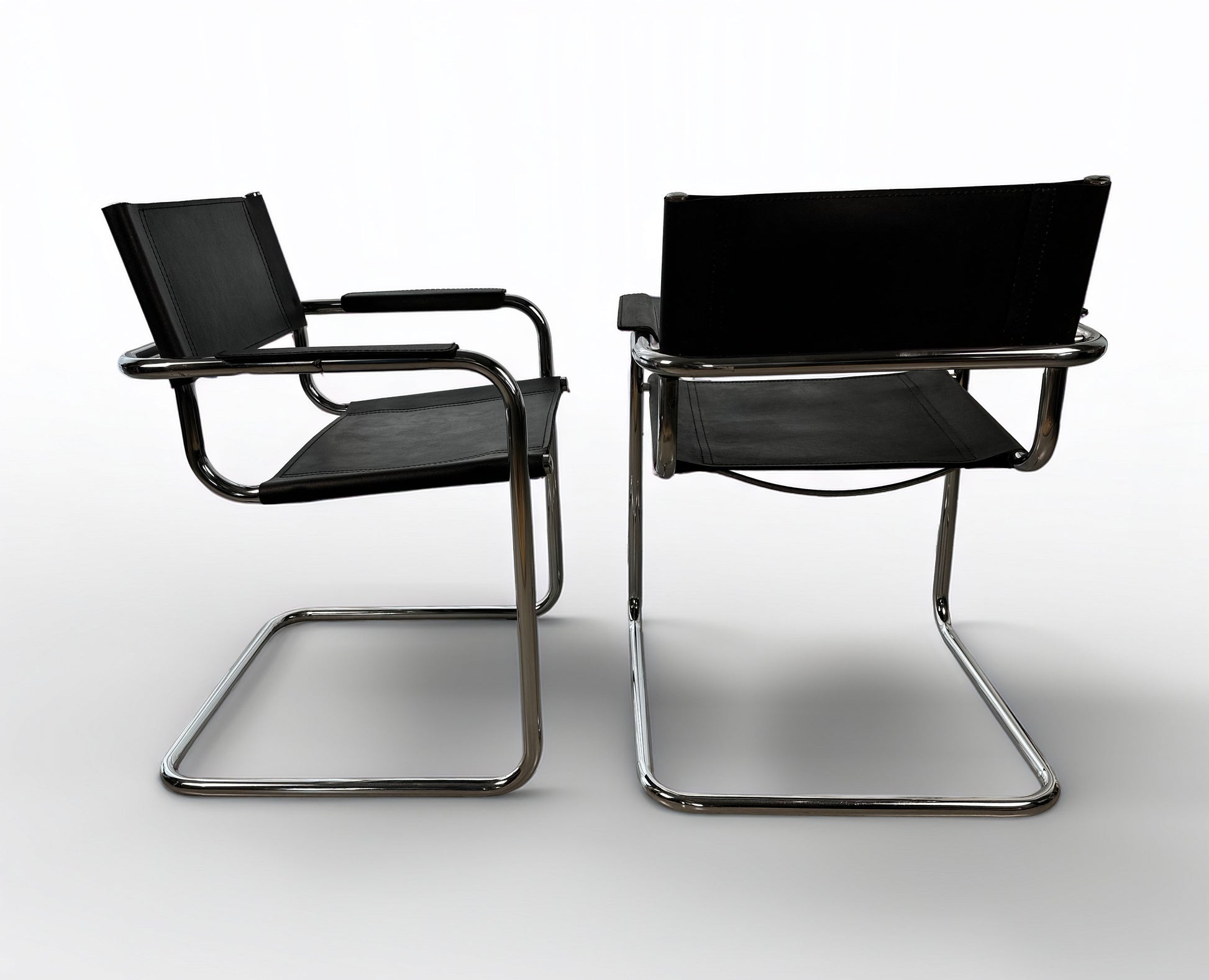 Set of 6 Vintage Cantilever Chairs in Chrome & Black